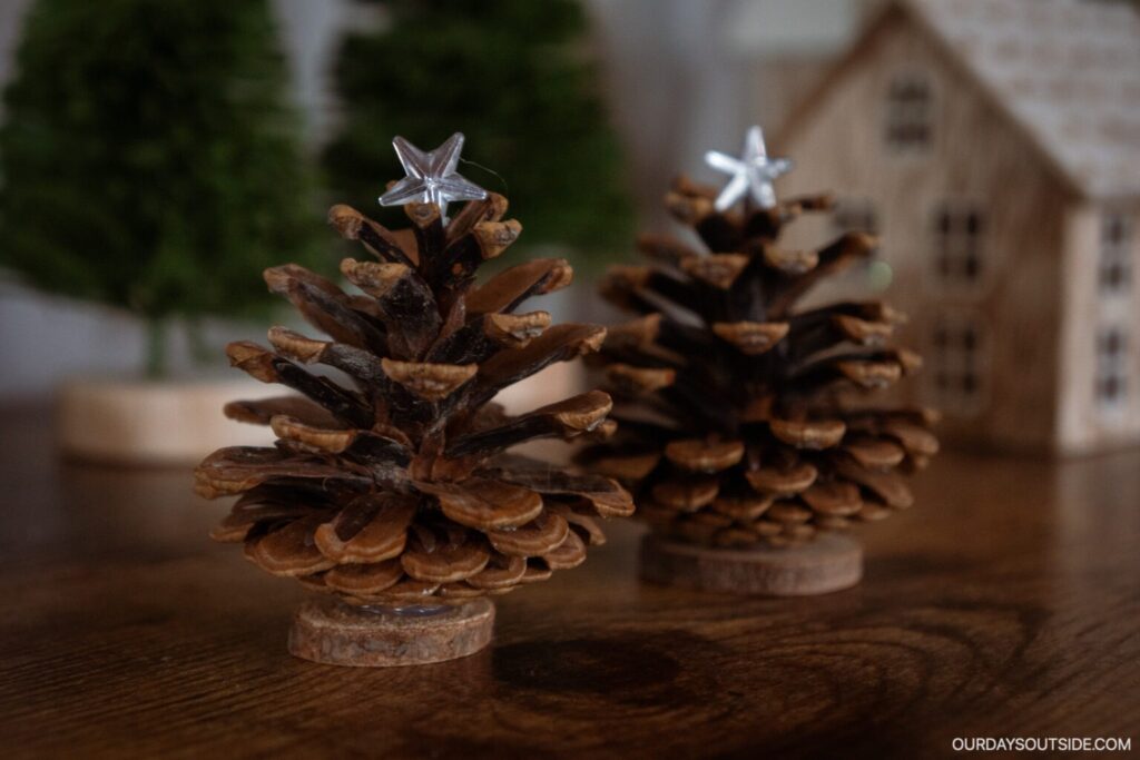 Une excellente excuse pour cueillir des pommes de pin lors de votre prochaine randonnée, ces adorables mini-arbres peuvent ajouter une touche de beauté naturelle à votre décoration de vacances.
