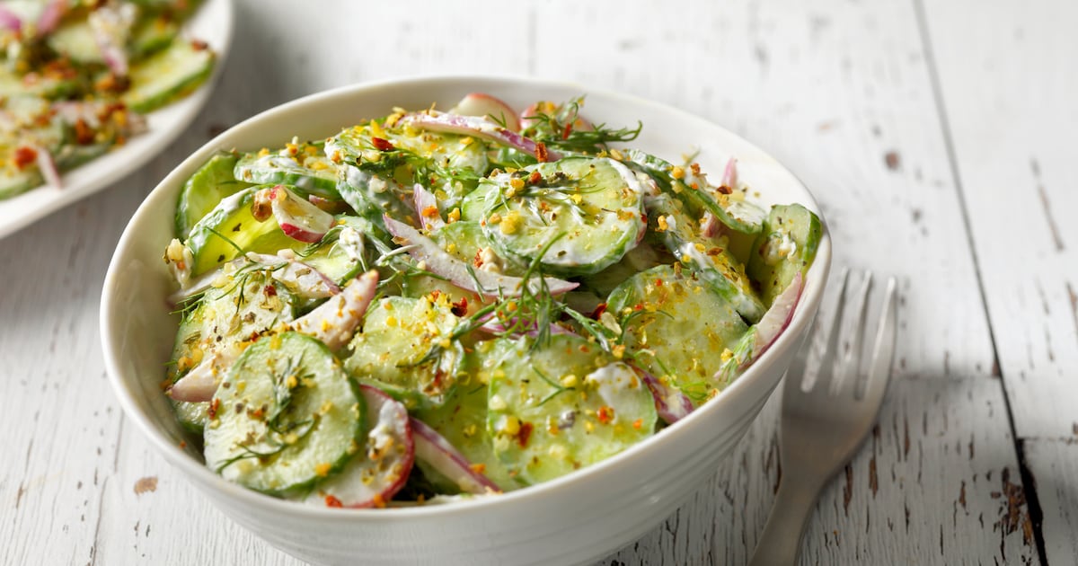Cette salade légère de concombre apporte une touche de fraîcheur à chaque assiette. La recette du célèbre chef Jamie Oliver est simple, rapide à préparer et marque des points grâce à ses ingrédients peu nombreux mais frais.