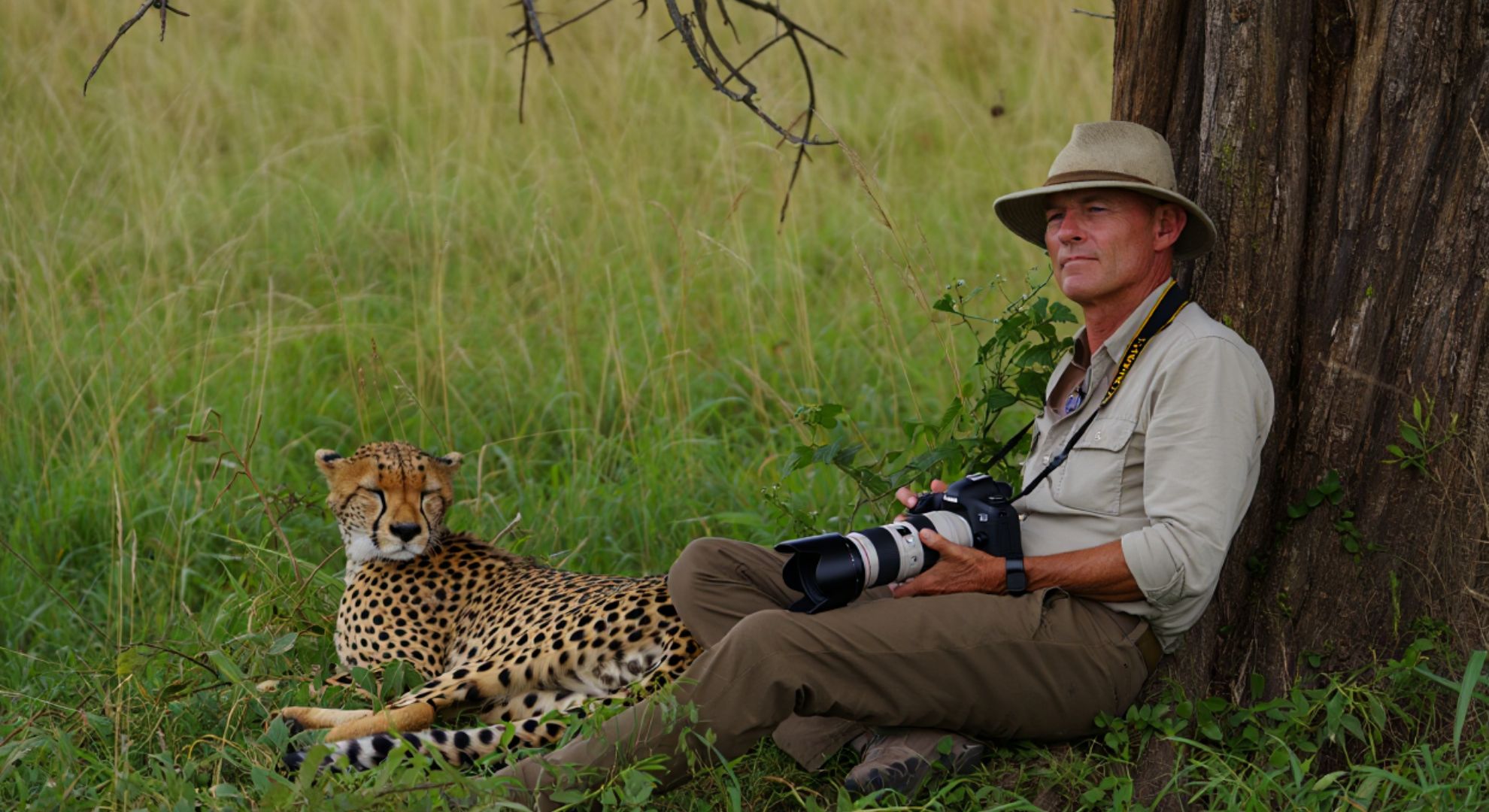 Le métier de photographe animalier réclame une patience à toute épreuve, des heures d’affût et une attention sans faille. Mais certains jours réservent une surprise que même l’expérience ne peut anticiper. En Afrique, un professionnel s’est réveillé d’une courte sieste à l’ombre d’un arbre, avec un guépard profondément endormi contre son épaule.